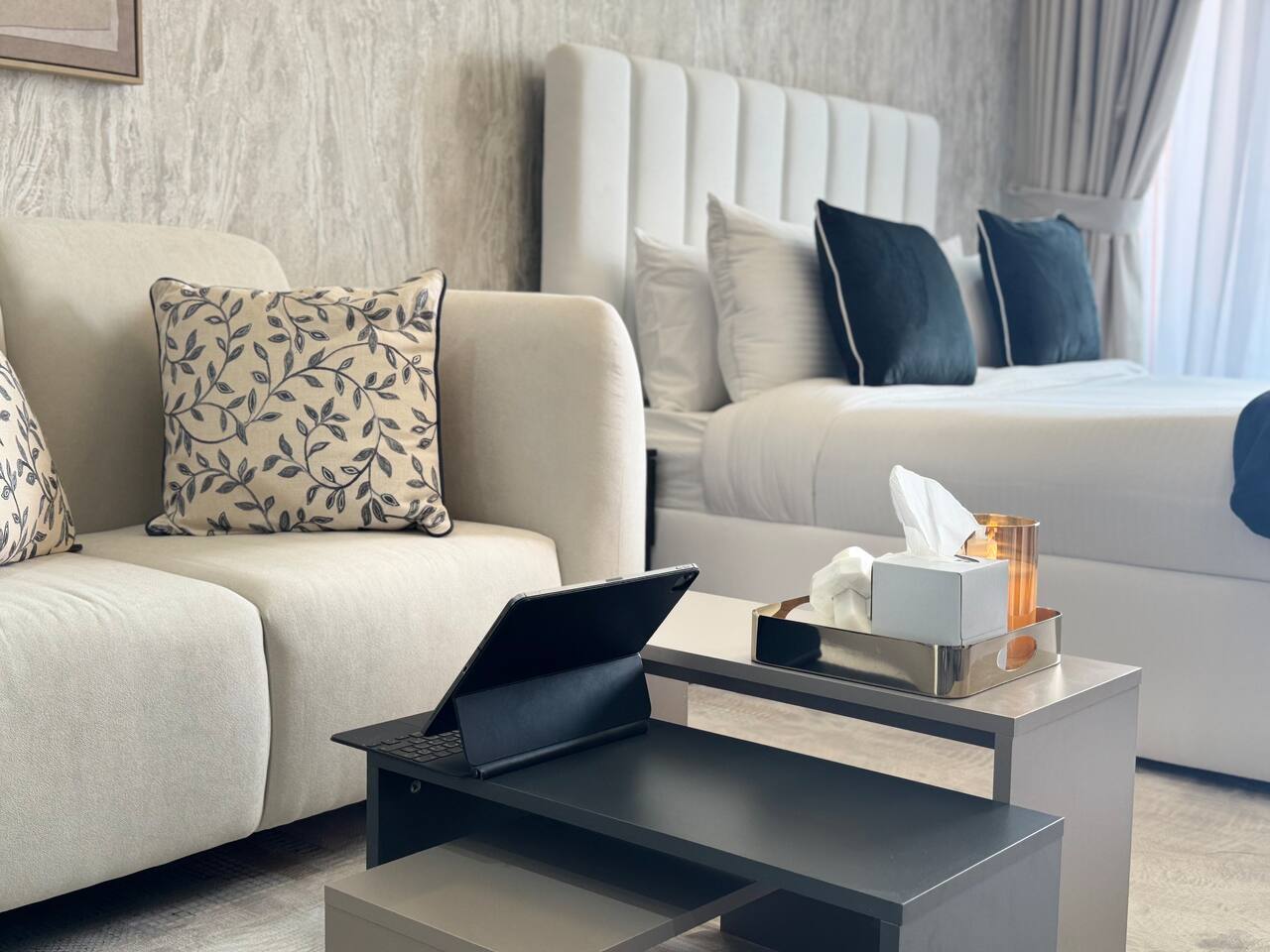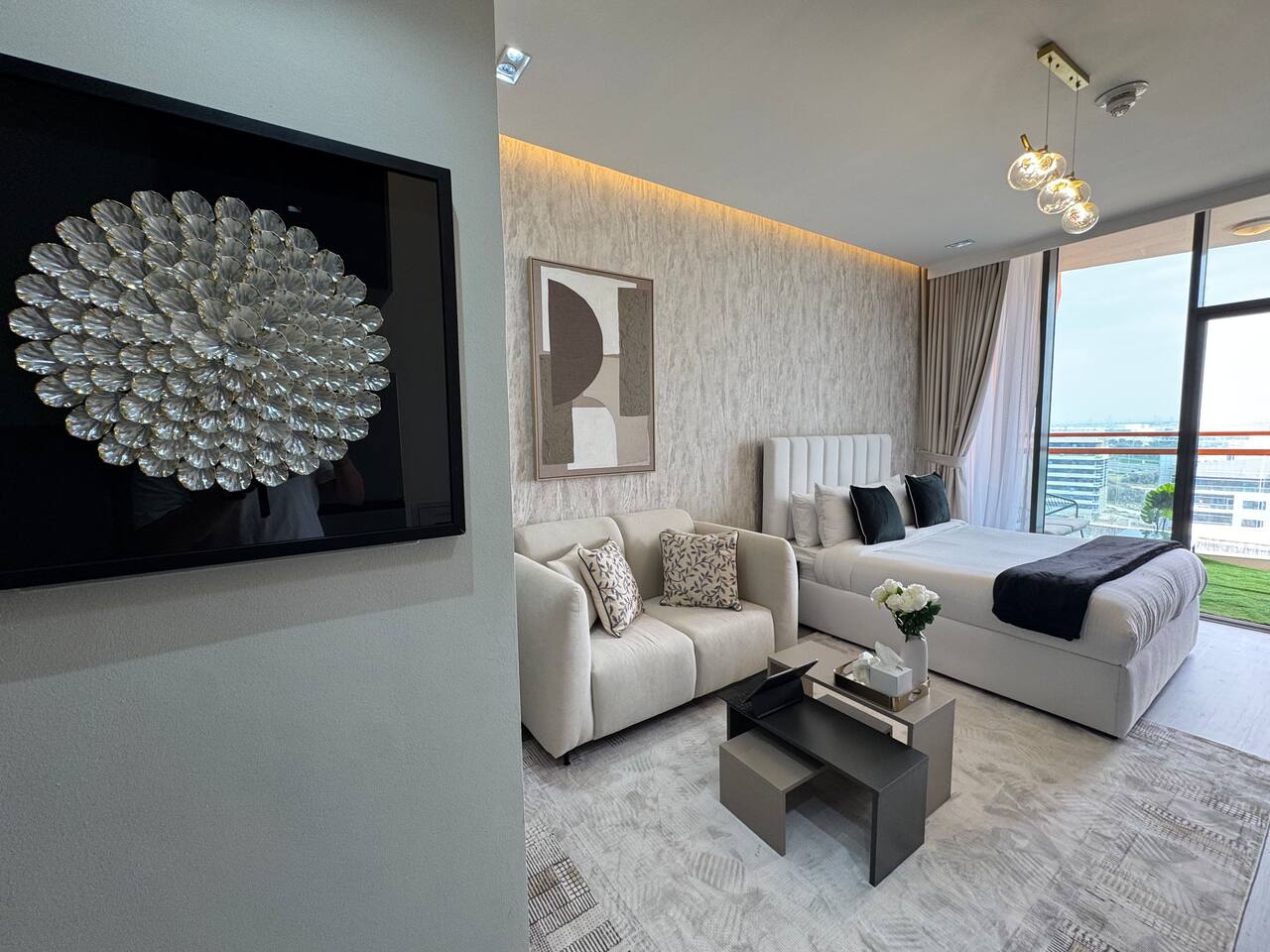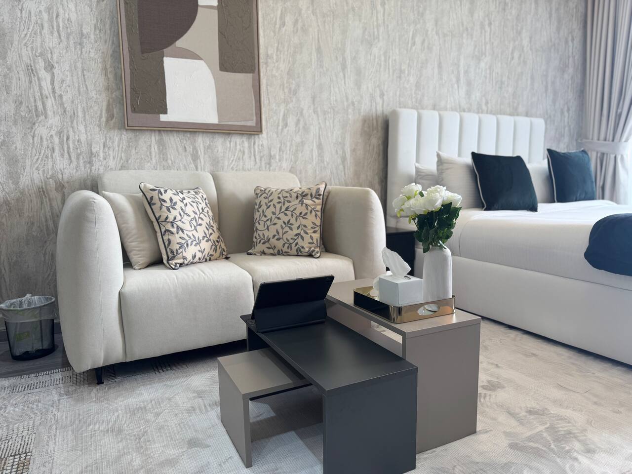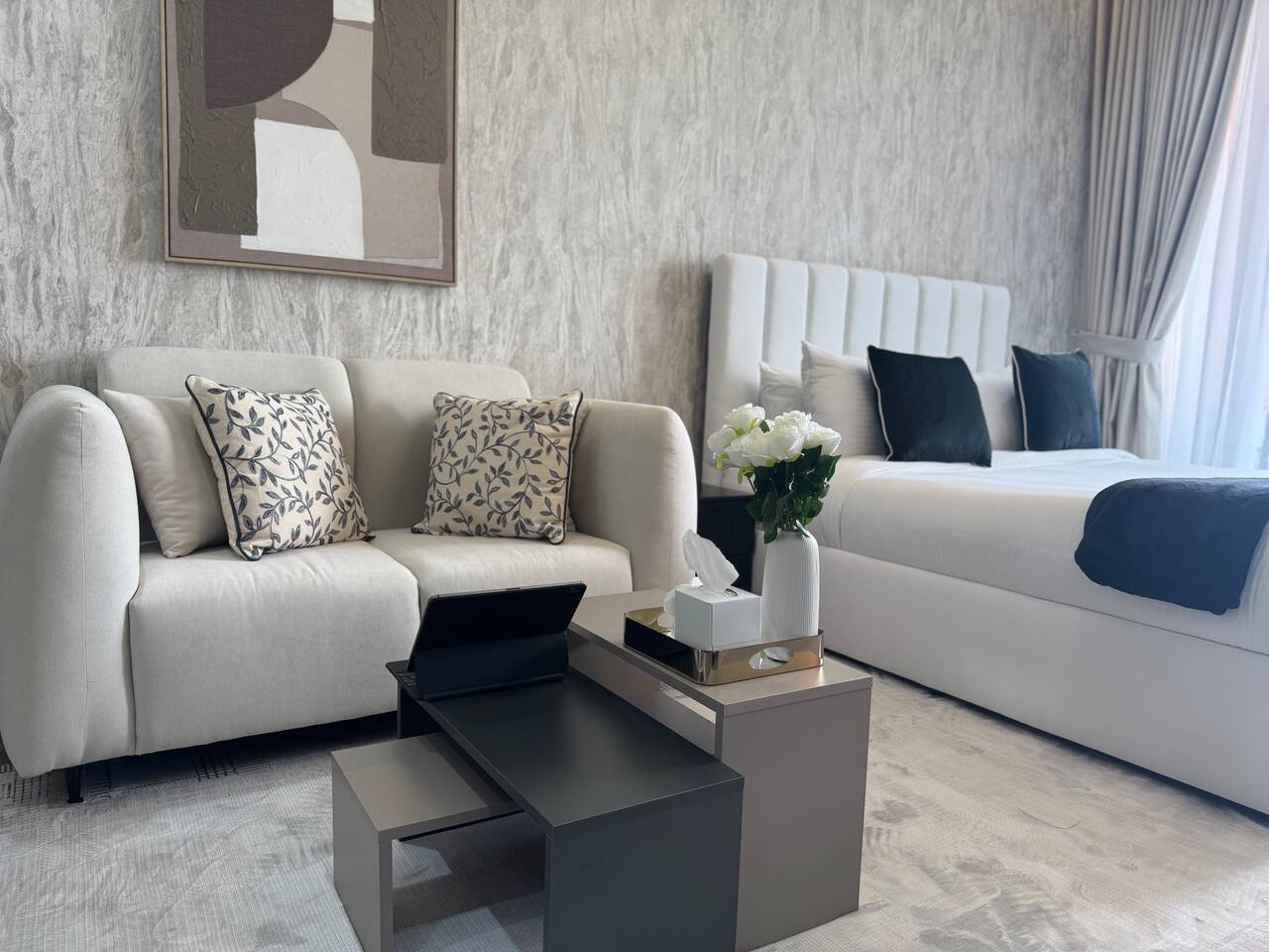 Experience luxury and comfort at our fully furnished studio in Binghatti Crystals, Silicon Oasis. Designed for convenience and relaxation, this stylish space features modern furnishings, a fully equipped kitchen, high-speed WiFi, and a cozy living area with a smart TV. you’ll find everything you need for a comfortable stay. Building Amenities: • Swimming pool • 24/7 security and concierge service • Covered parking • High-speed elevators • Retail shops and cafés