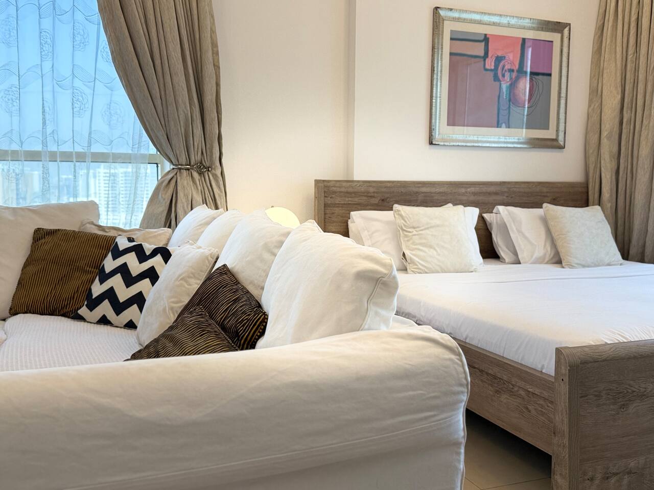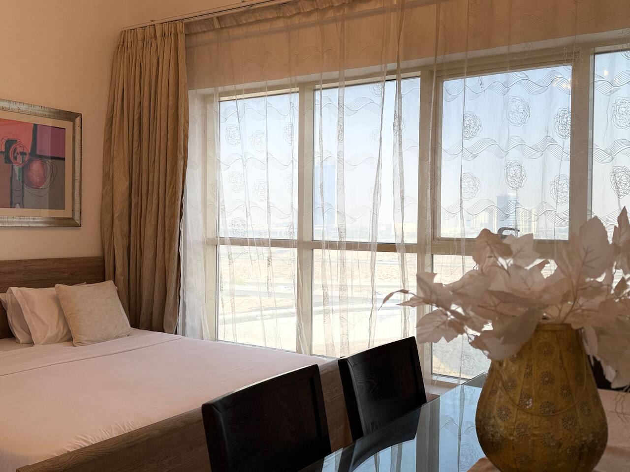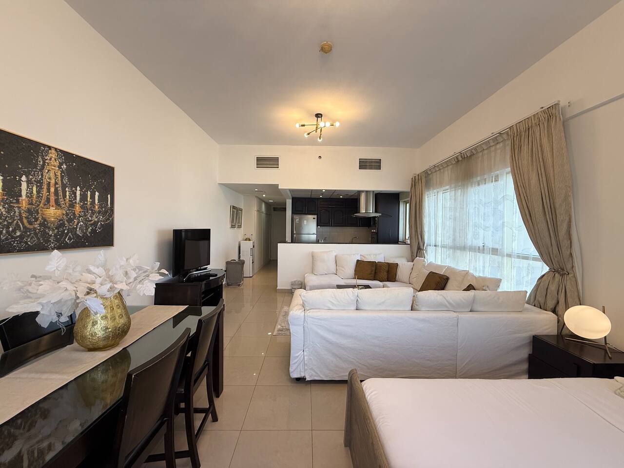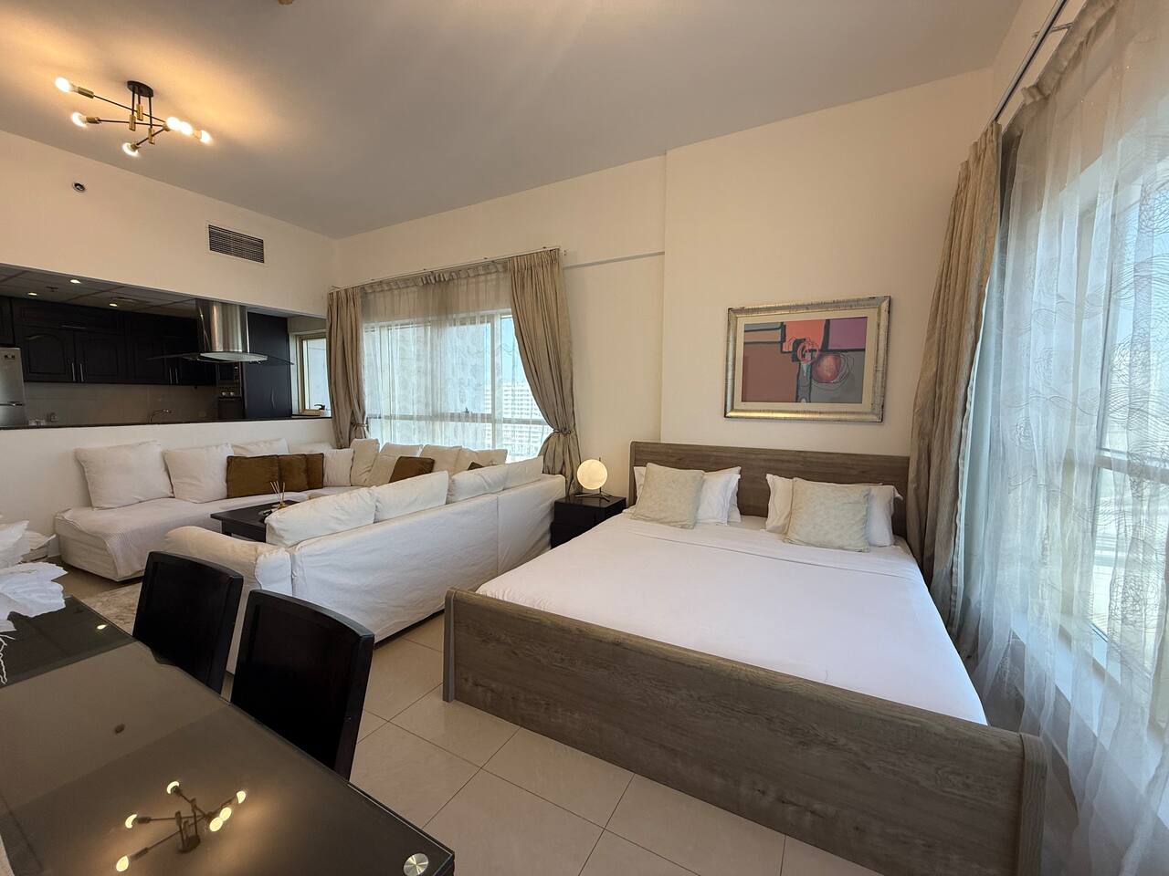 Introducing our newest gem in JVC. This apartment is a harmony of space and comfort, adorned with spacious, cozy furniture. Experience modern living surrounded by inviting elegance. Welcome home to luxury and relaxation. The apartment consist of two totally independent studios, where they only share the main entrance. Book with Ashri Holiday Homes now.