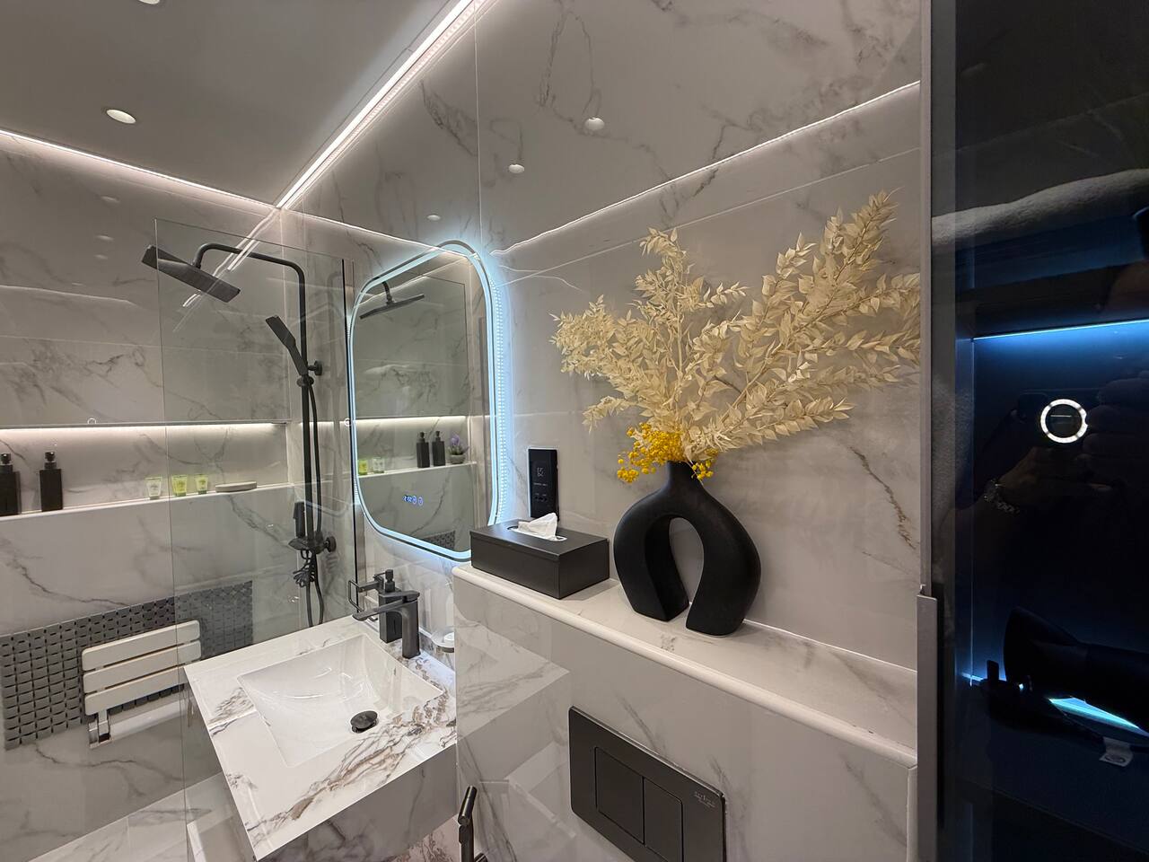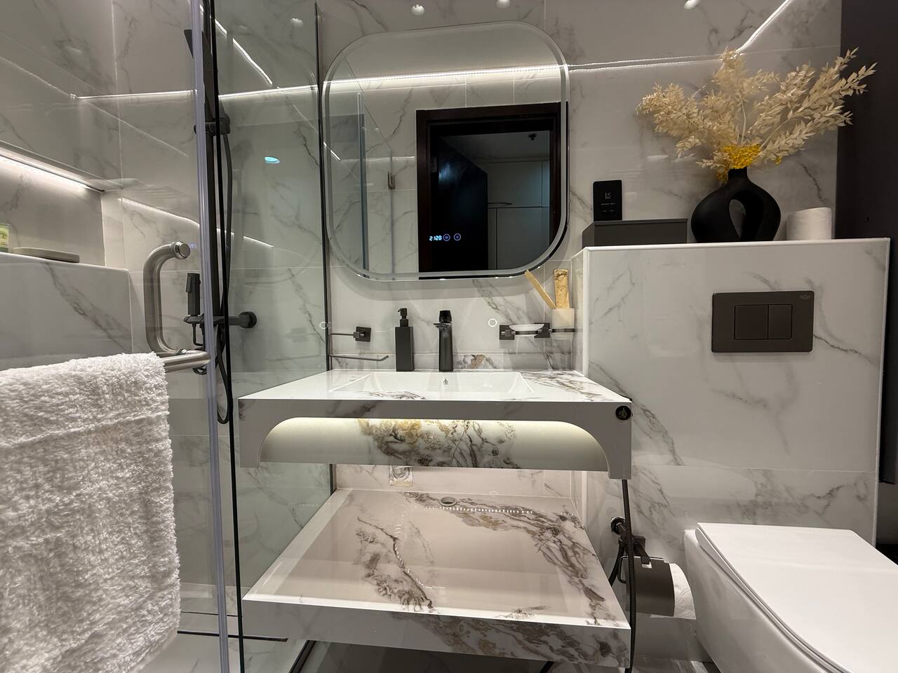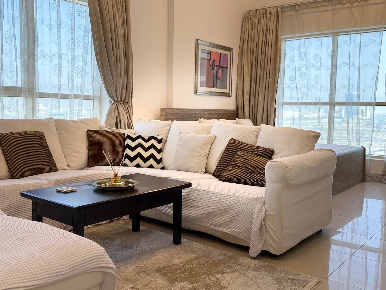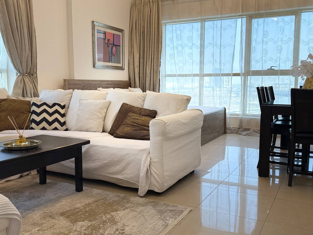 Introducing our newest gem in JVC. This apartment is a harmony of space and comfort, adorned with spacious, cozy furniture. Experience modern living surrounded by inviting elegance. Welcome home to luxury and relaxation. The apartment consist of two totally independent studios, where they only share the main entrance. Book with Ashri Holiday Homes now.