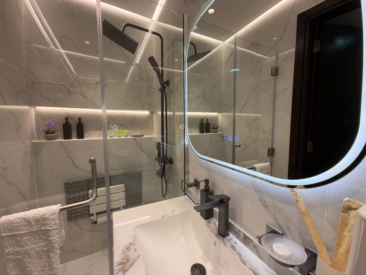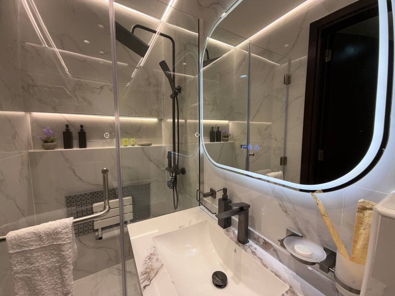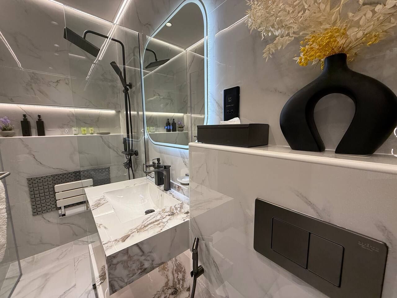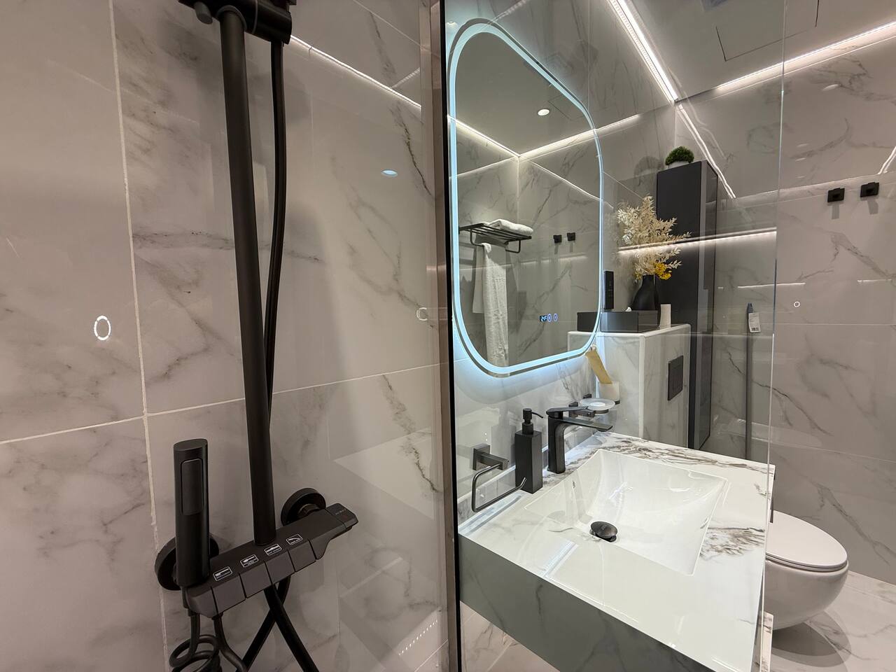 Introducing our newest gem in JVC. This apartment is a harmony of space and comfort, adorned with spacious, cozy furniture. Experience modern living surrounded by inviting elegance. Welcome home to luxury and relaxation. The apartment consist of two totally independent studios, where they only share the main entrance. Book with Ashri Holiday Homes now.