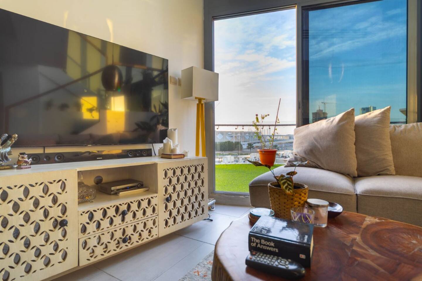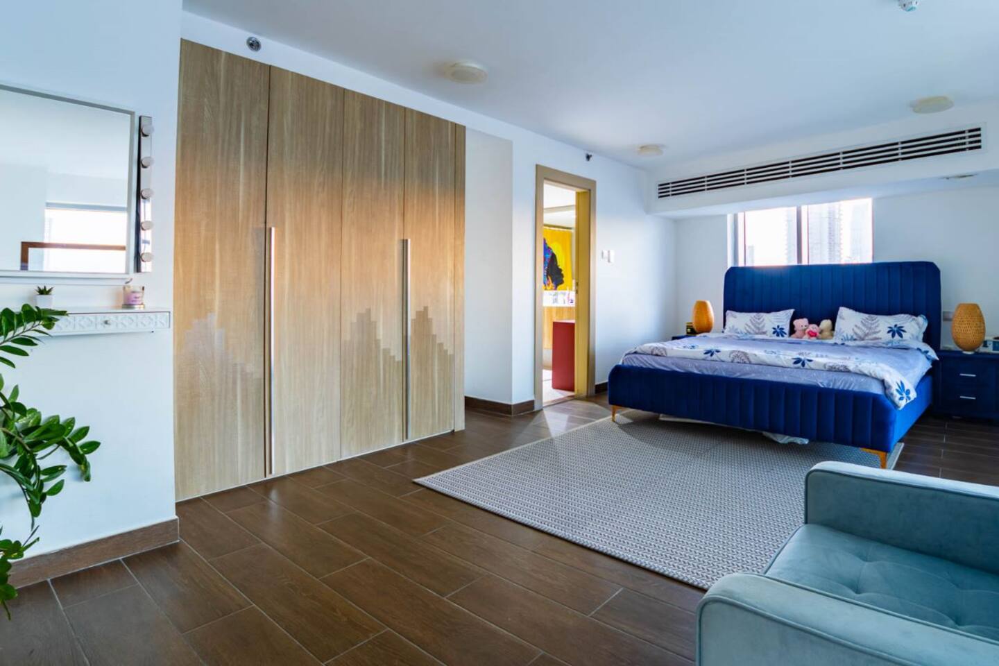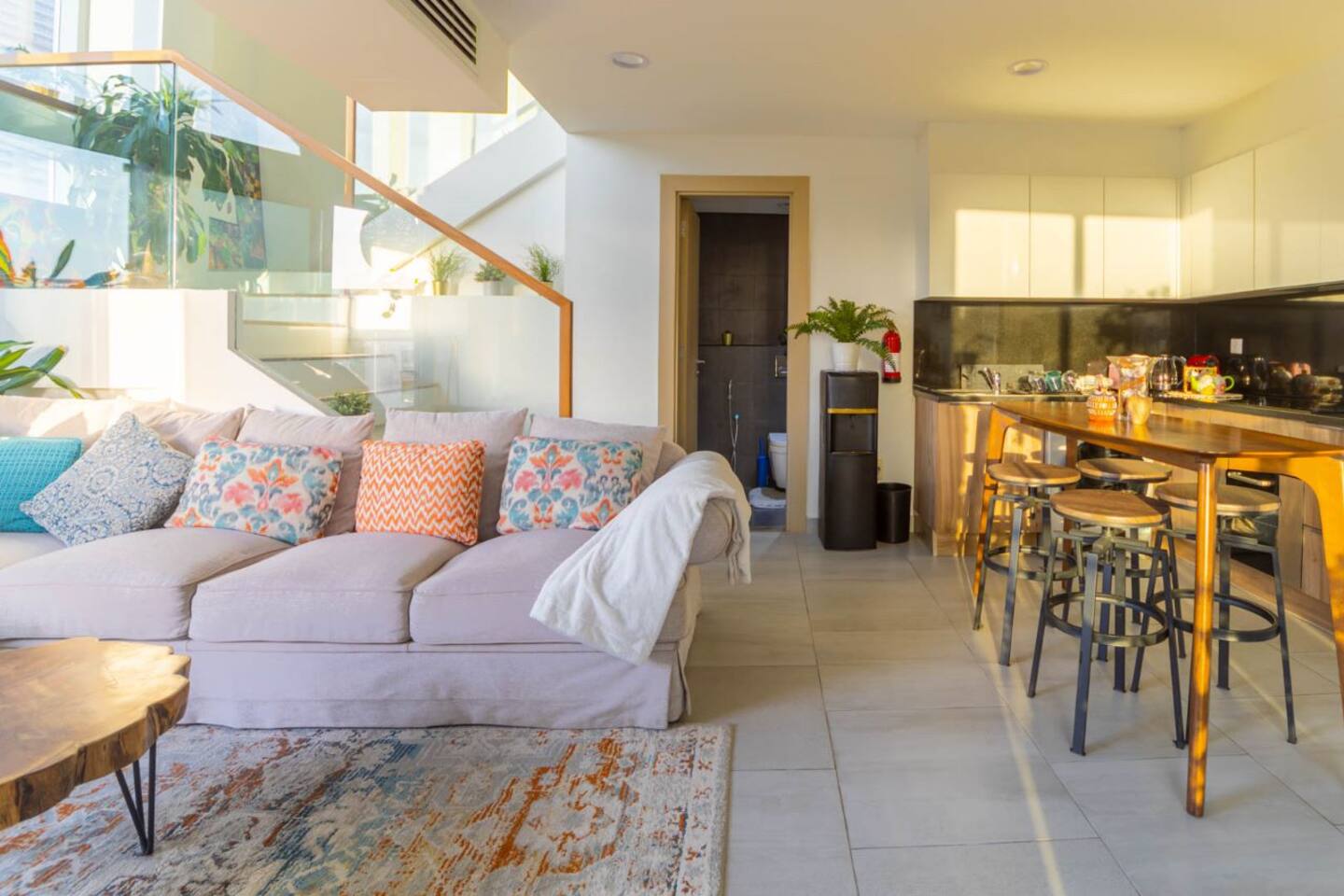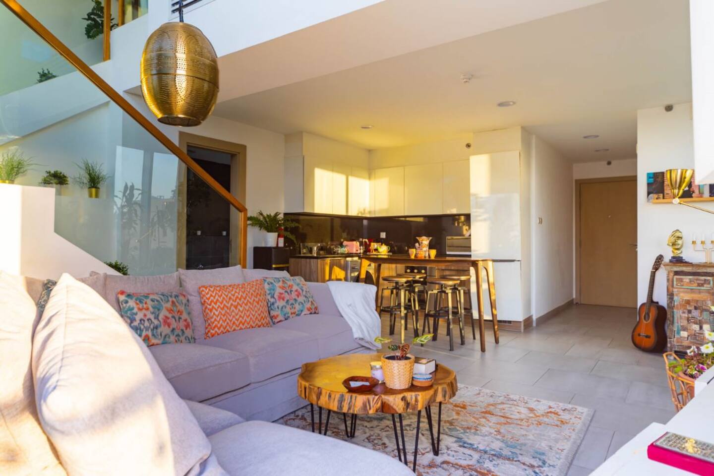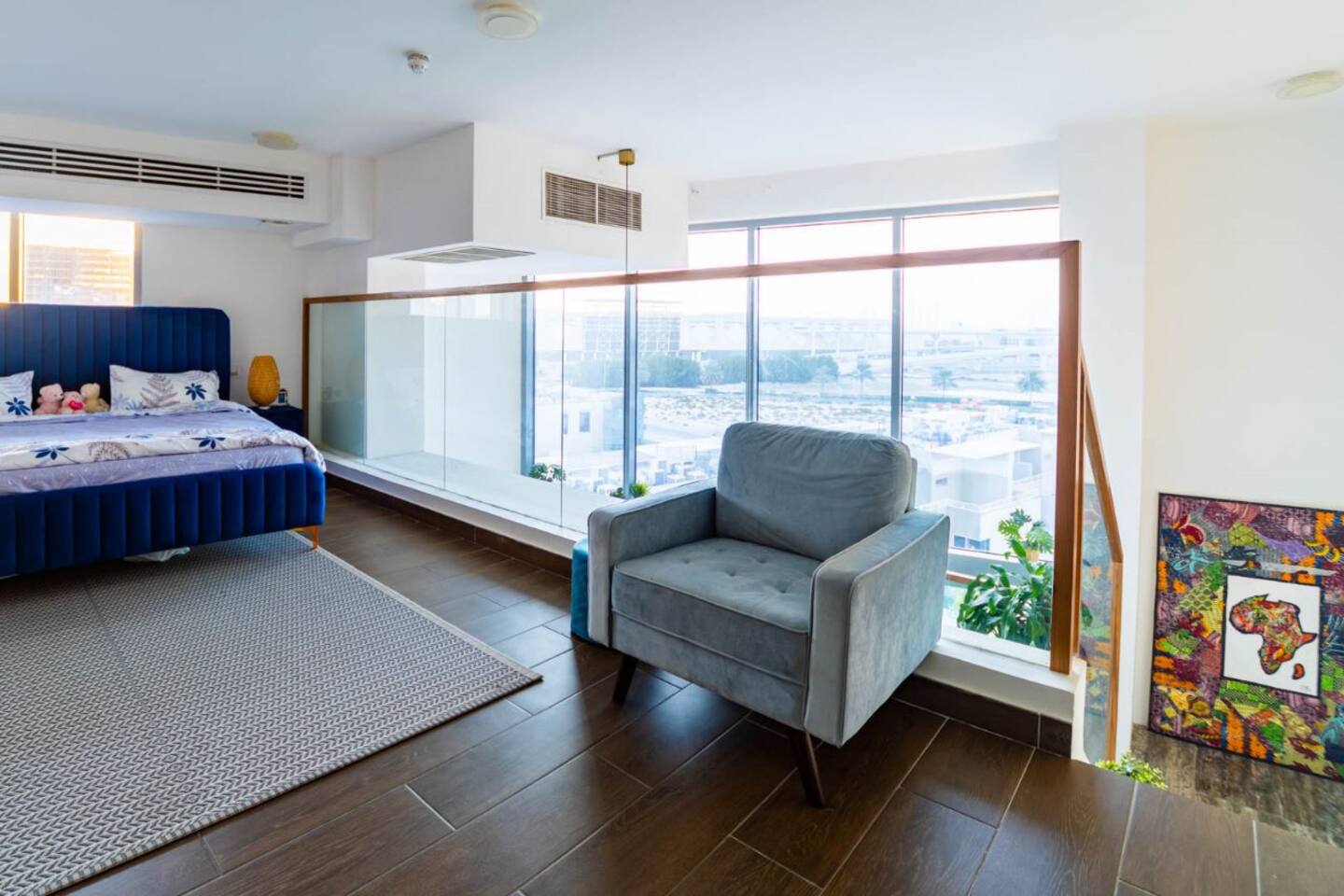 Welcome to our uniquely designed African rustic-inspired loft in the heart of JVC, located in the stylish Shamal Waves building. This fully furnished space blends natural textures and earthy tones for a cozy, soulful stay. Step out onto your huge private terrace—perfect for relaxing or dining under the stars, complete with comfortable outdoor seating. The loft features an open layout, fully equipped kitchen. Book your stay with Ashri Holiday Homes