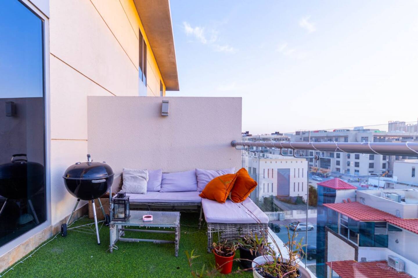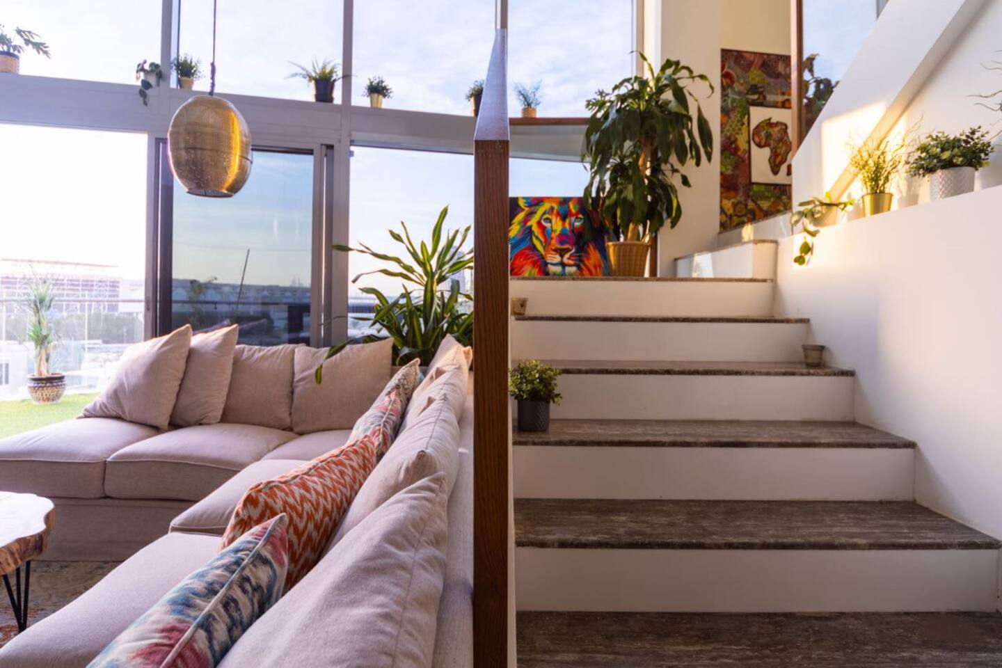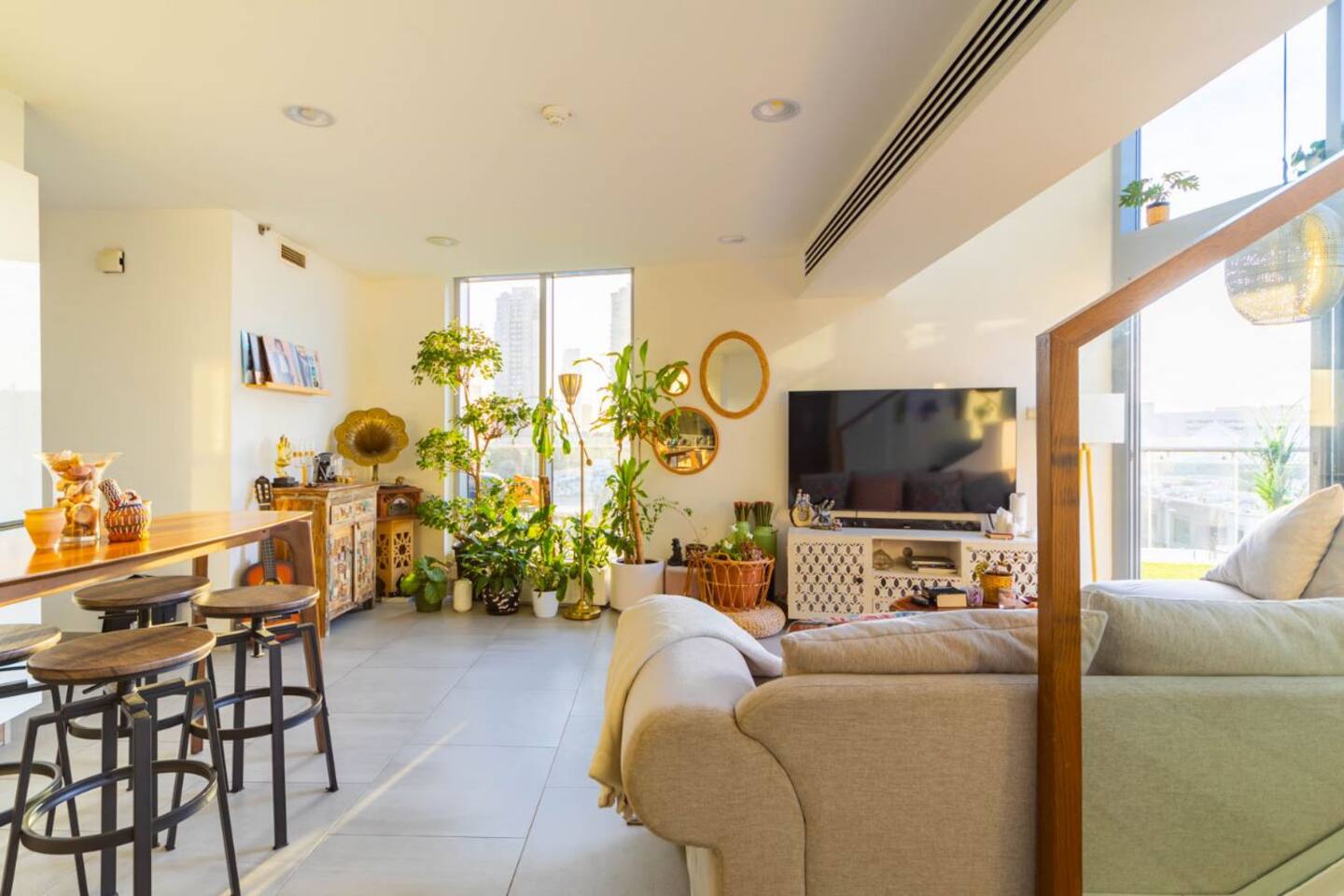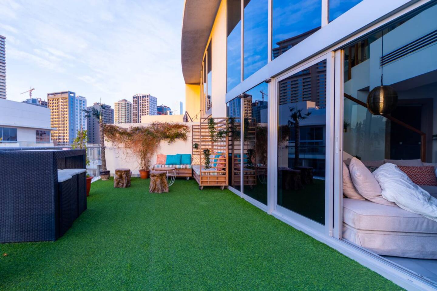Welcome to our uniquely designed African rustic-inspired loft in the heart of JVC, located in the stylish Shamal Waves building. This fully furnished space blends natural textures and earthy tones for a cozy, soulful stay. Step out onto your huge private terrace—perfect for relaxing or dining under the stars, complete with comfortable outdoor seating. The loft features an open layout, fully equipped kitchen. Book your stay with Ashri Holiday Homes