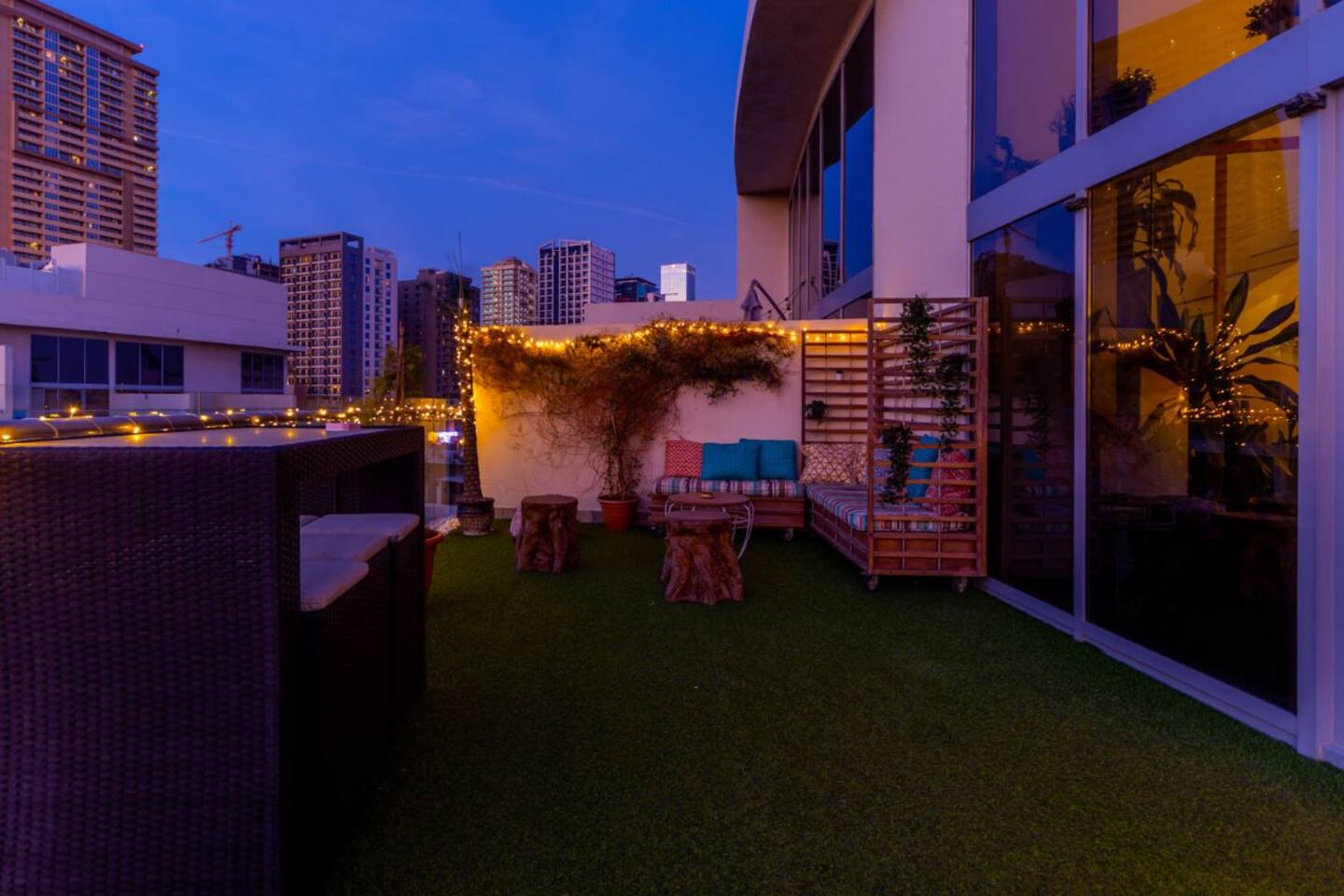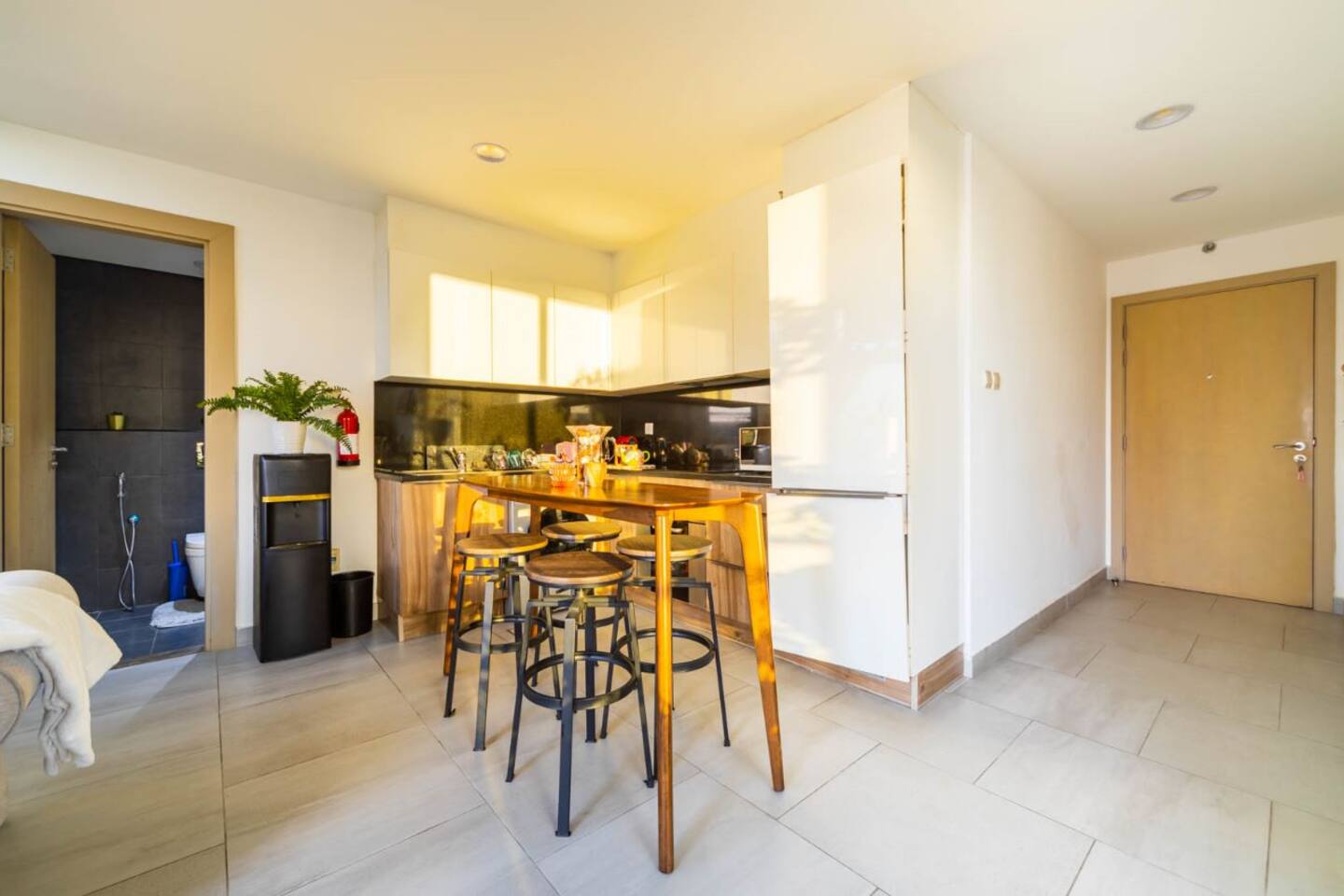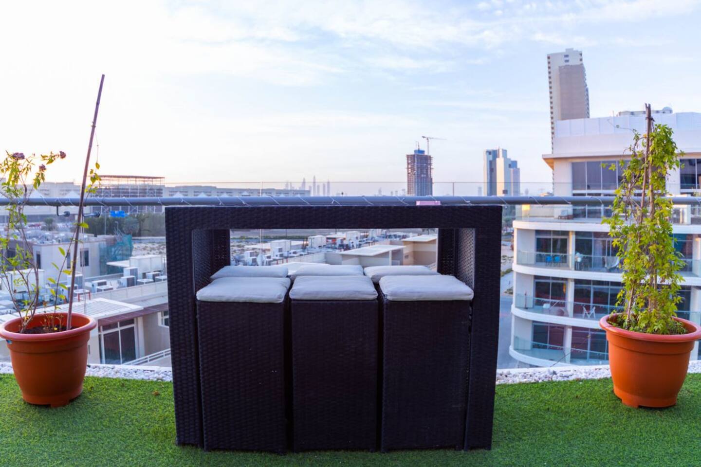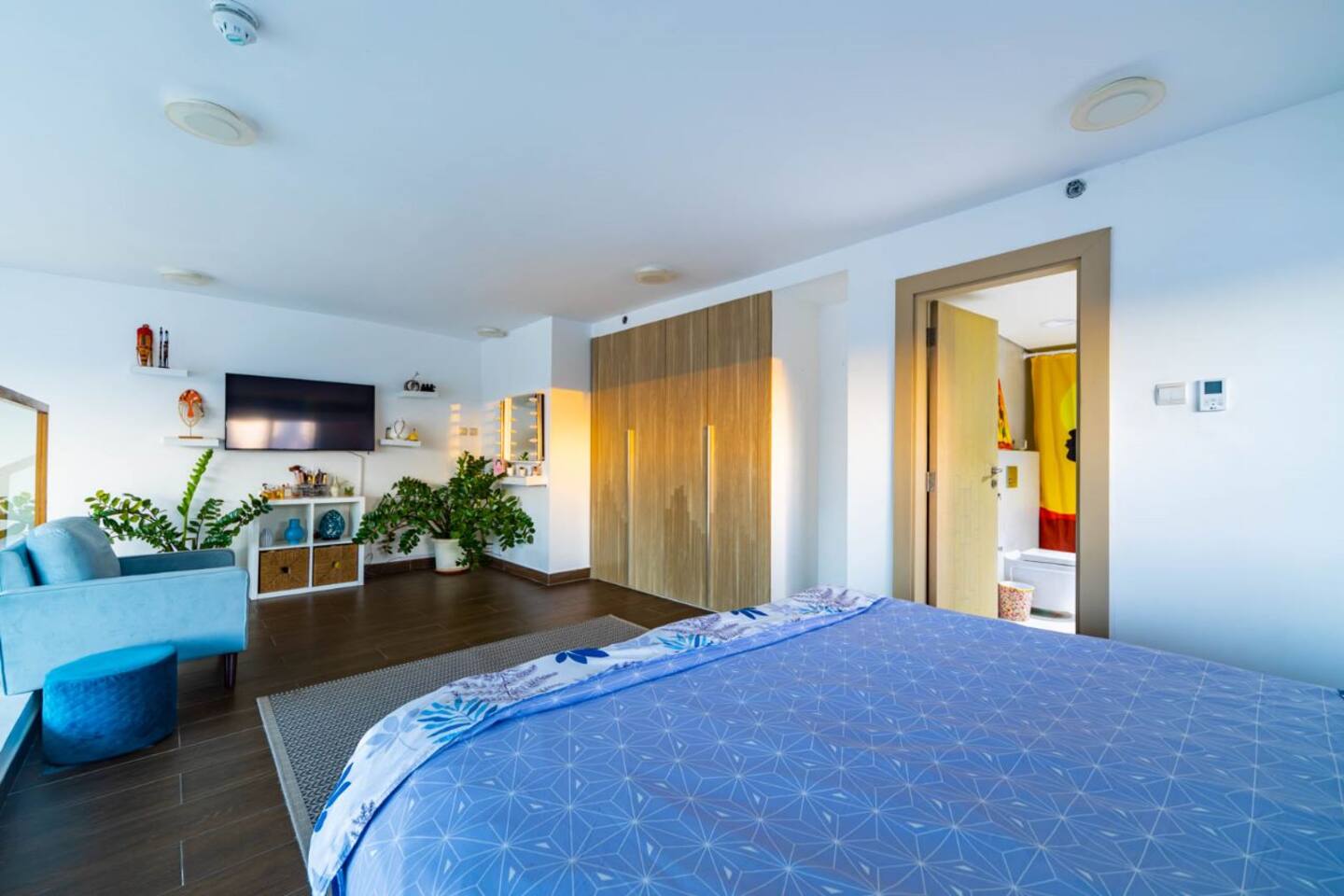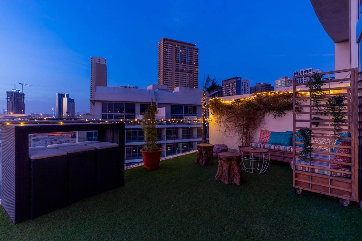 Welcome to our uniquely designed African rustic-inspired loft in the heart of JVC, located in the stylish Shamal Waves building. This fully furnished space blends natural textures and earthy tones for a cozy, soulful stay. Step out onto your huge private terrace—perfect for relaxing or dining under the stars, complete with comfortable outdoor seating. The loft features an open layout, fully equipped kitchen. Book your stay with Ashri Holiday Homes