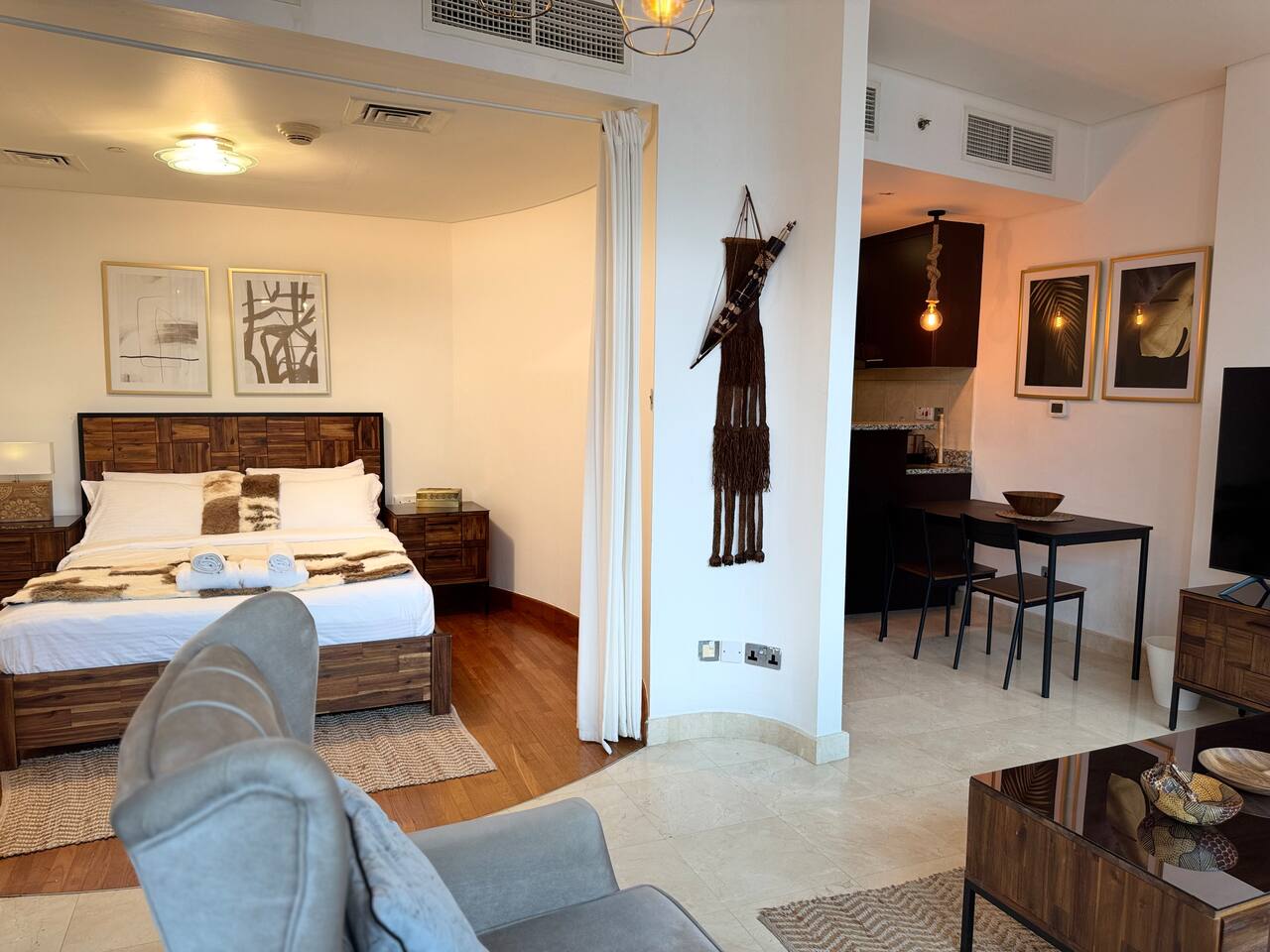 Welcome to our spacious and stylish African-themed studio in Sky Gardens, a perfect blend of comfort, elegance, and cultural charm. Designed for both business travelers and leisure seekers, this fully furnished studio offers a unique ambiance with warm earthy tones, handcrafted décor, and vibrant African-inspired accents. Enjoy the breathtaking city views, Located in the heart of Dubai finical center (DIFC), you’re just minutes away from top restaurants, art galleries, and key business hubs.