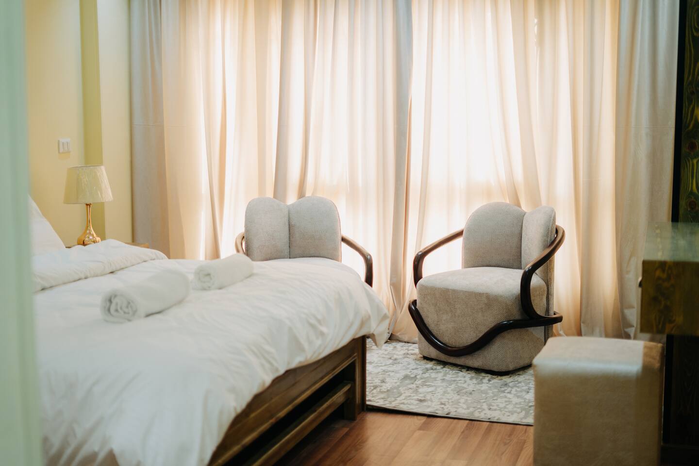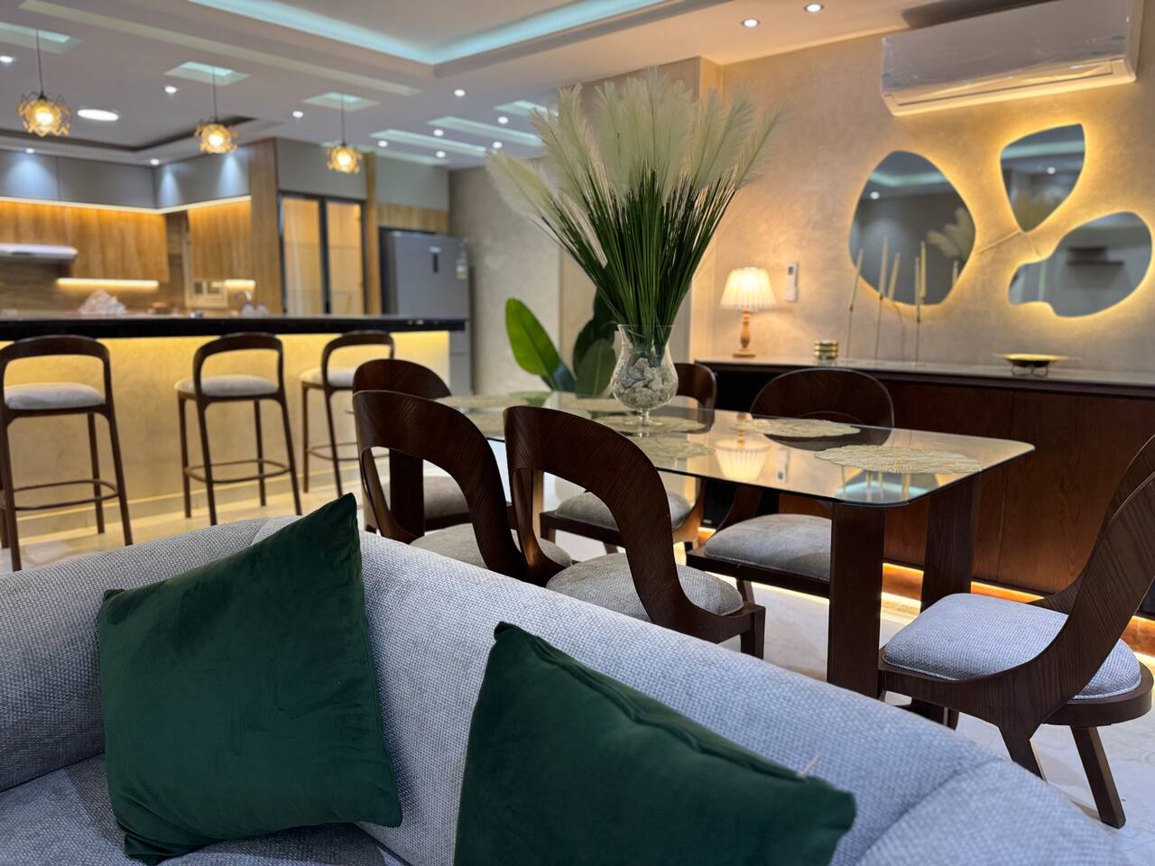 Stay in this stylish 3-bedroom, 4-bathroom apartment in Madinaty B11, Group 112. Fully furnished with a modern touch, it features a spacious living area, fully equipped kitchen, and comfortable bedrooms. Located near supermarkets, cafes, and parks, it’s perfect for families or business travelers. Enjoy a relaxing and convenient stay—book now!