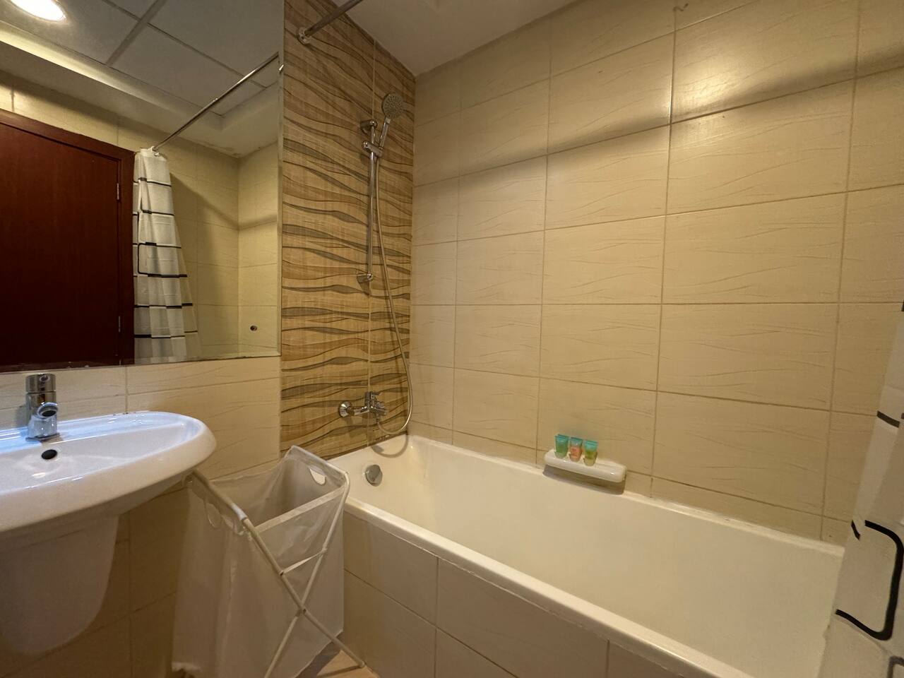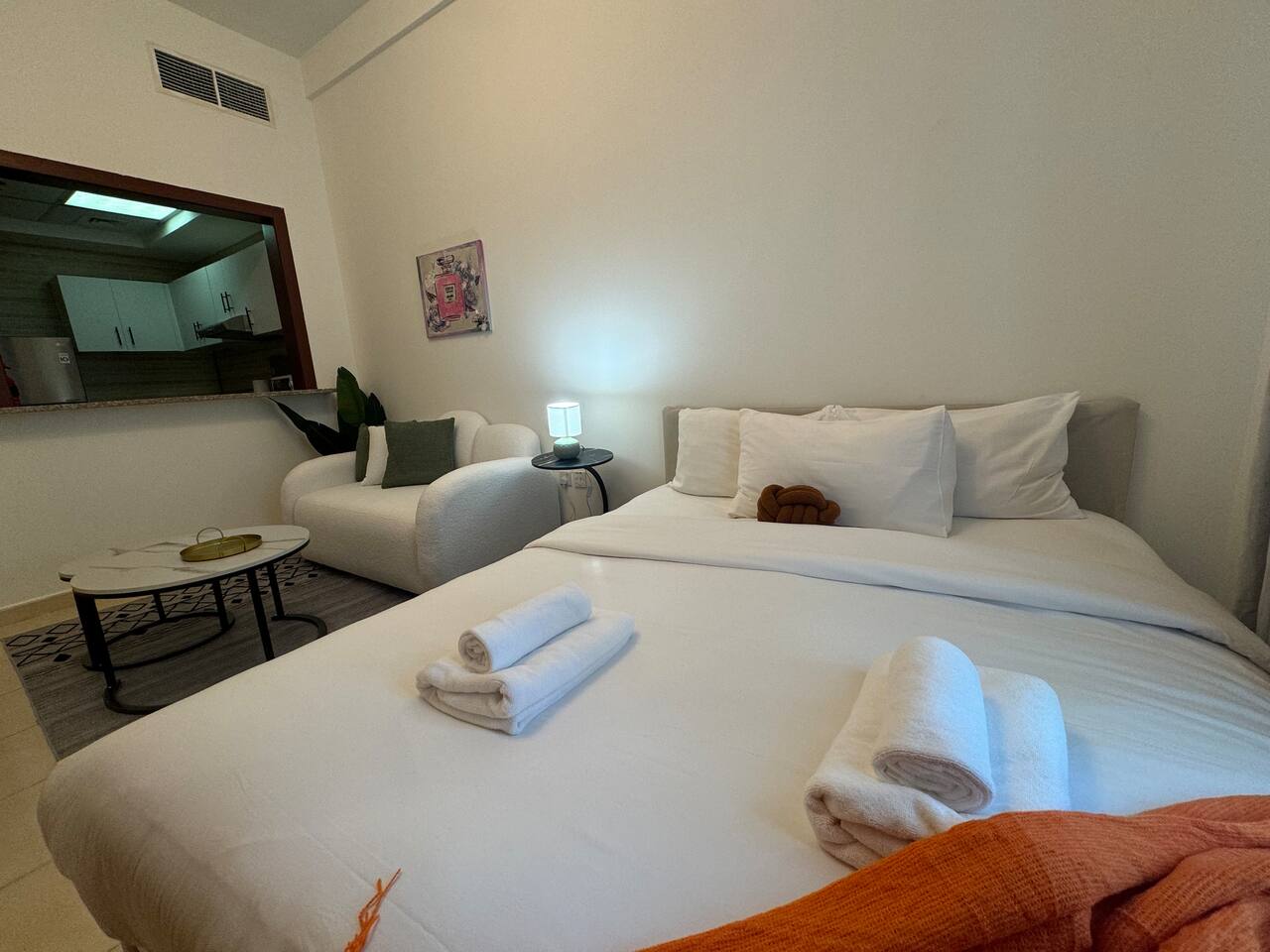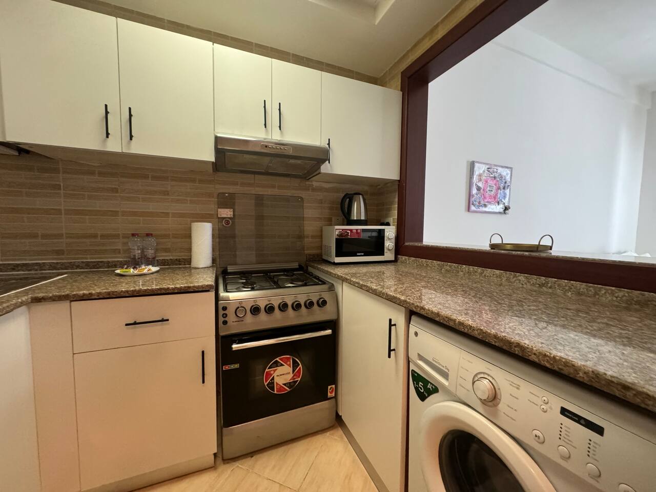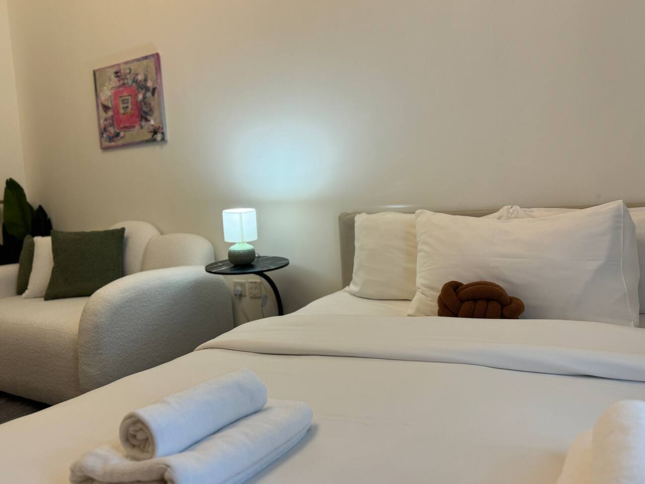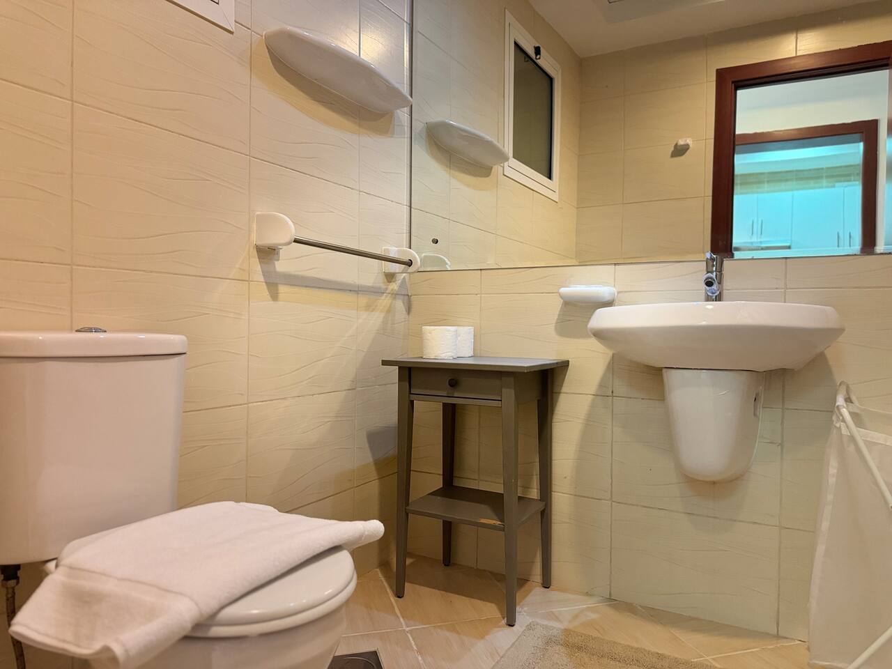 Relax with the whole family at this peaceful place to stay. Located next to City Center Maasem. Building Amenities: 1 Wifi. 2.Pool. 3.Gym. 4.Parking. 5.Cafteria. 6.barber shop. 7.Supermarket.