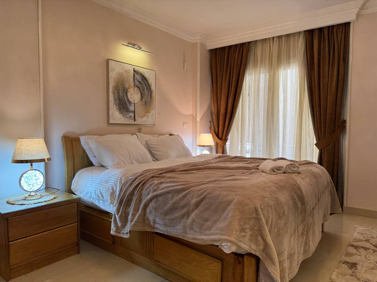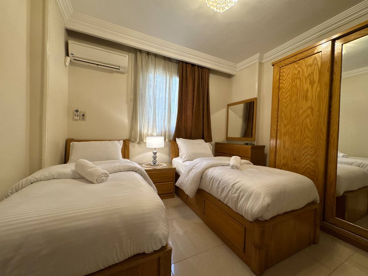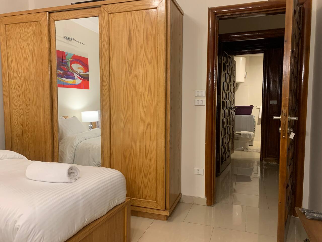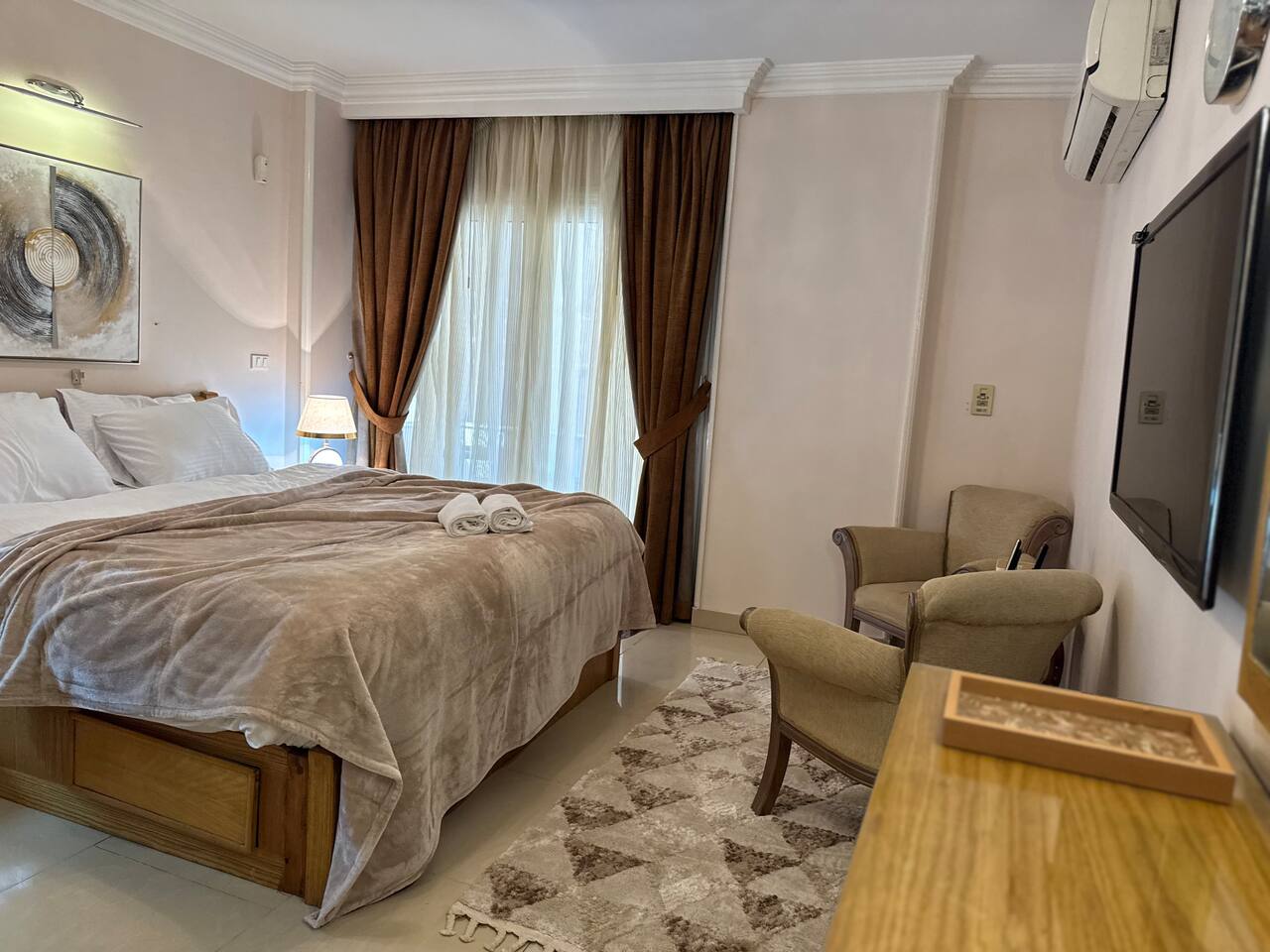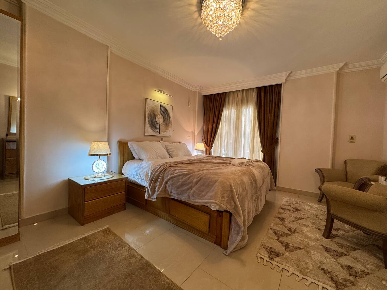 Description: Experience comfort and convenience in this spacious 3-bedroom apartment in the heart of Nasr City. Perfect for families or groups, this stylish home accommodates up to 6 guests. Each bedroom is thoughtfully furnished for relaxation, with a cozy living area ideal for unwinding after a day of exploring. Enjoy easy access to top attractions, shopping centers, and dining options, all within minutes. Your perfect Nasr City getaway starts here!