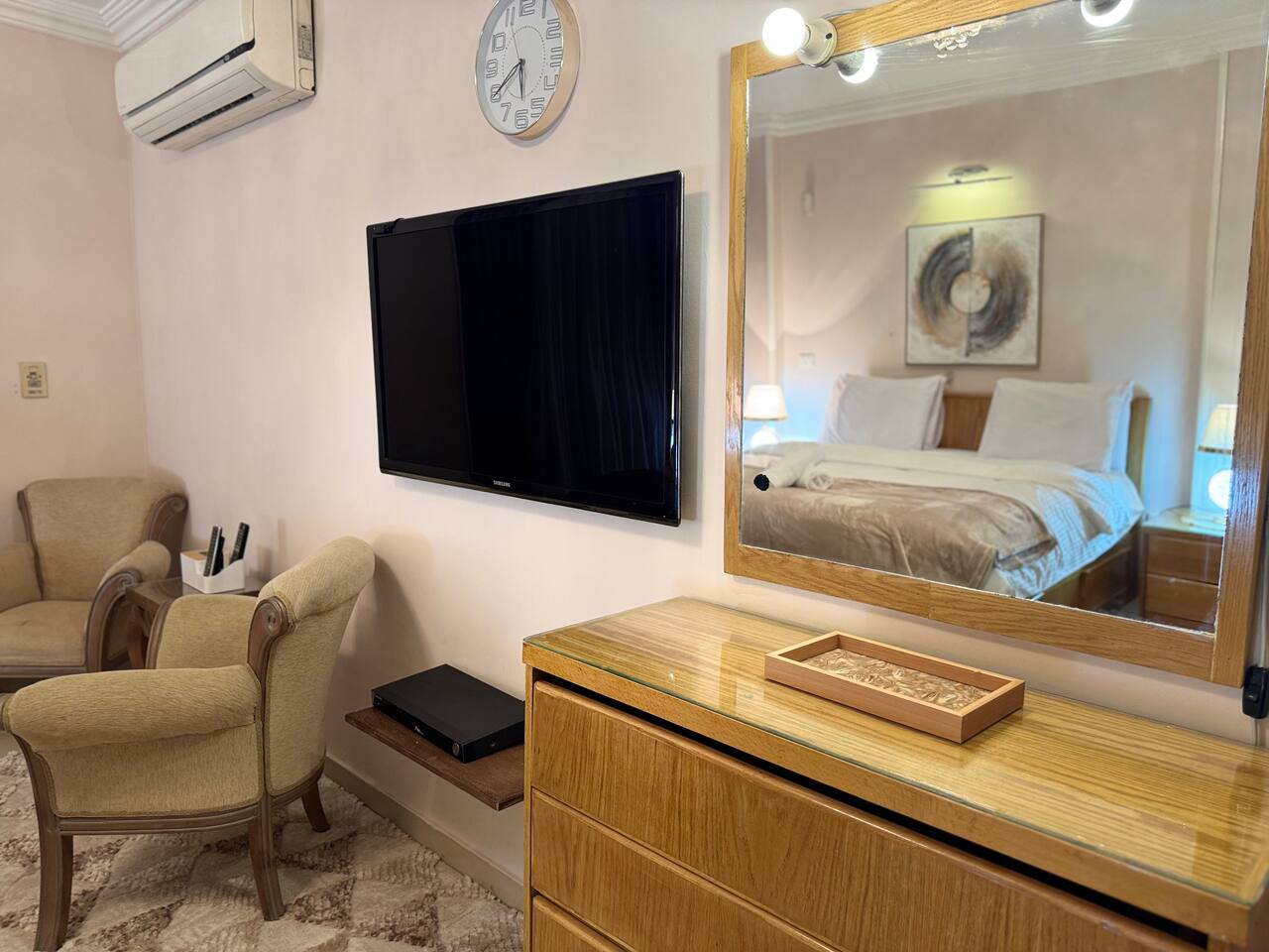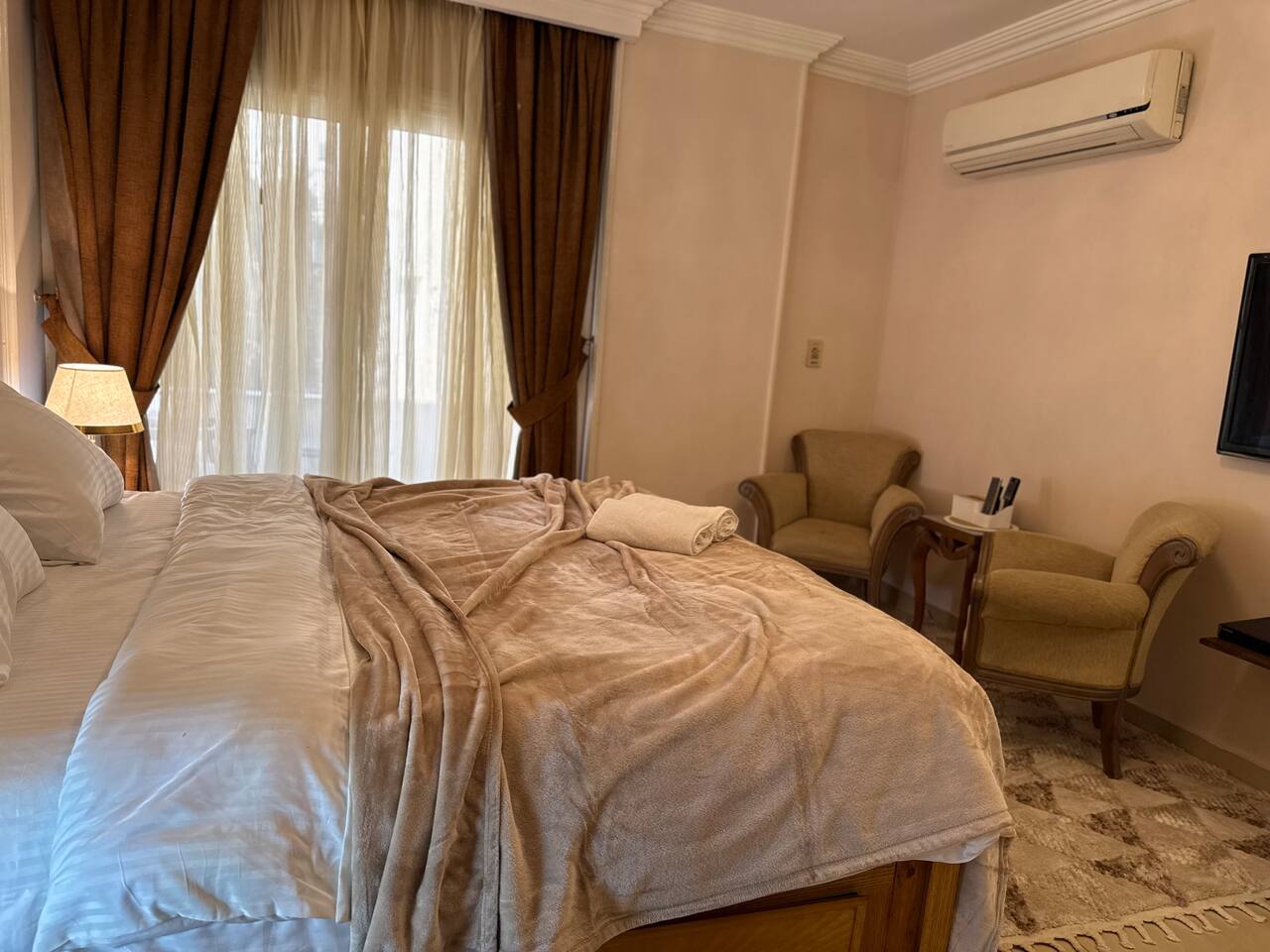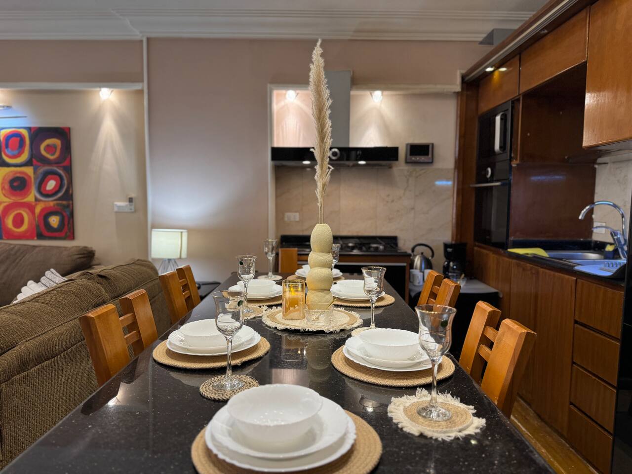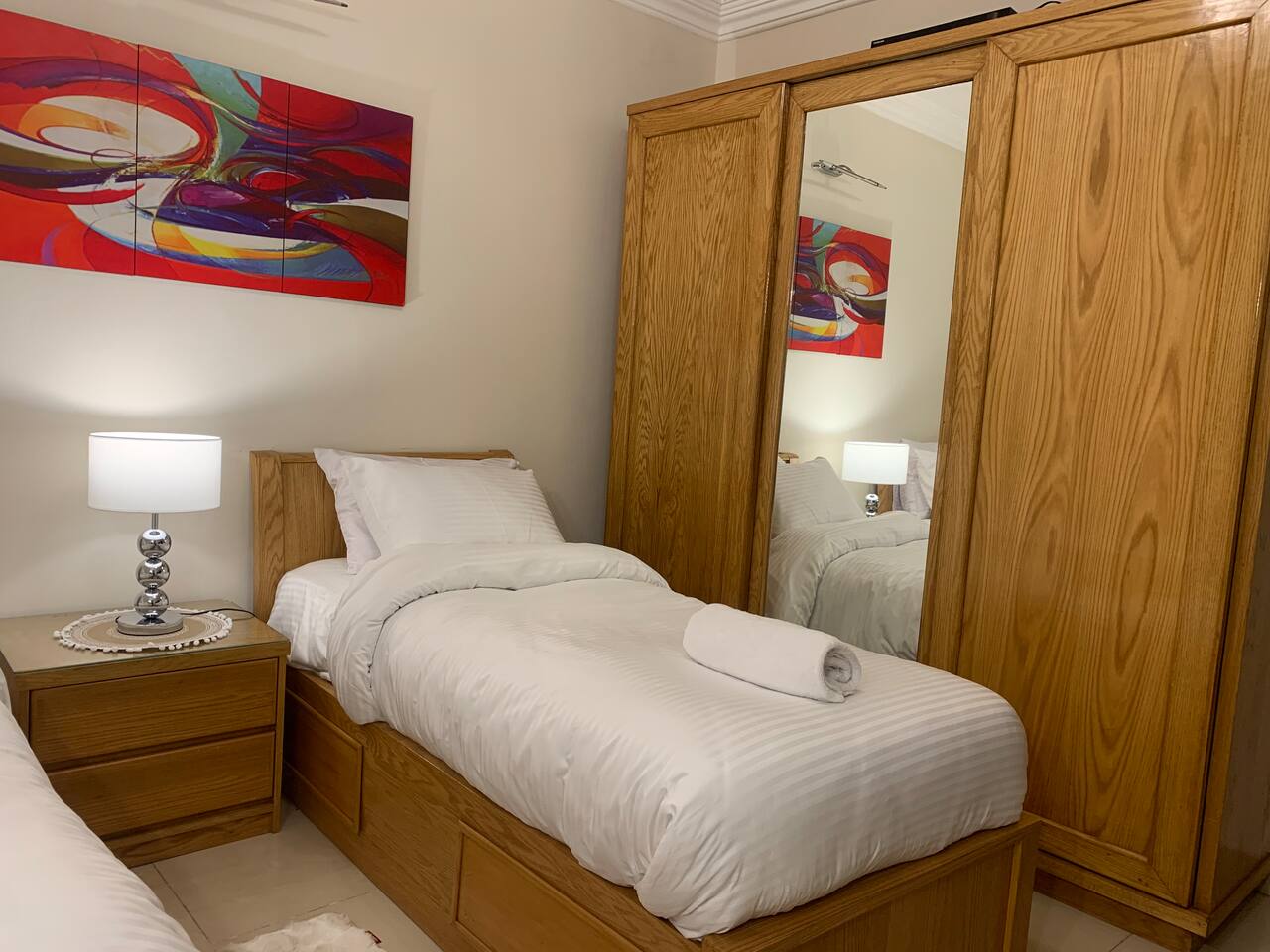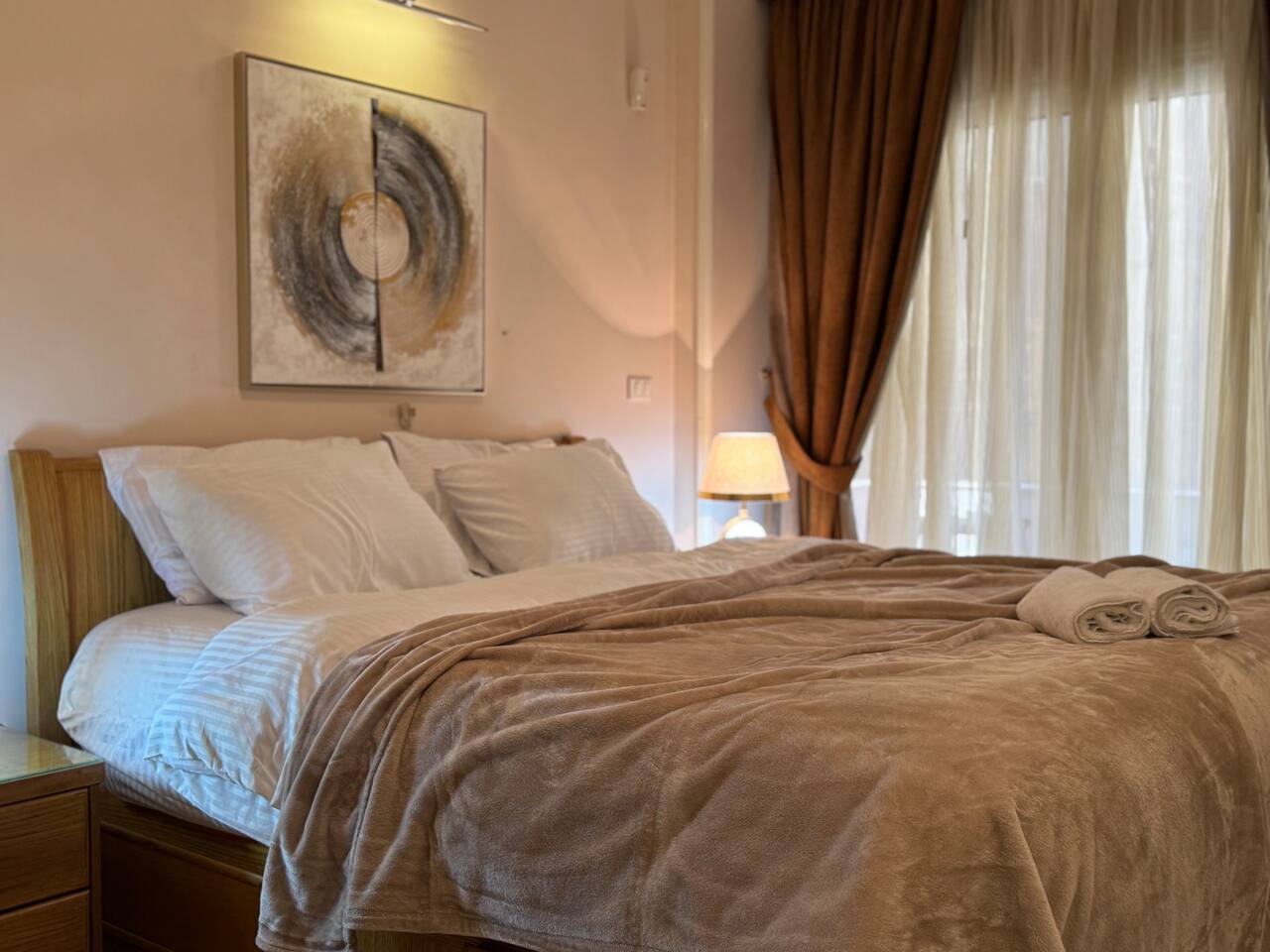 Description: Experience comfort and convenience in this spacious 3-bedroom apartment in the heart of Nasr City. Perfect for families or groups, this stylish home accommodates up to 6 guests. Each bedroom is thoughtfully furnished for relaxation, with a cozy living area ideal for unwinding after a day of exploring. Enjoy easy access to top attractions, shopping centers, and dining options, all within minutes. Your perfect Nasr City getaway starts here!